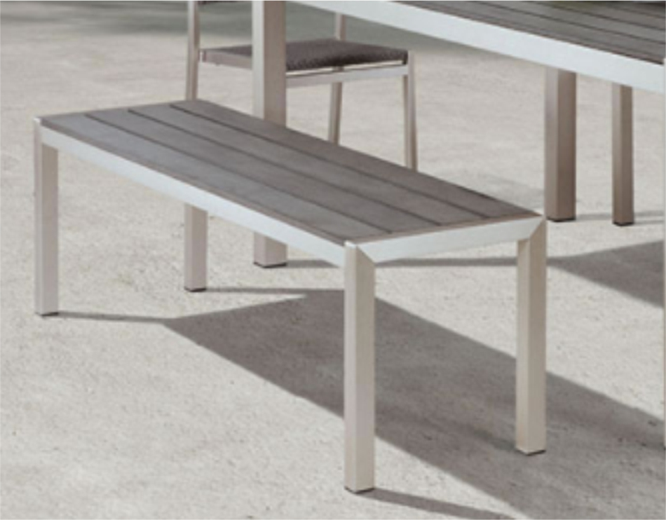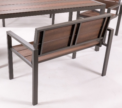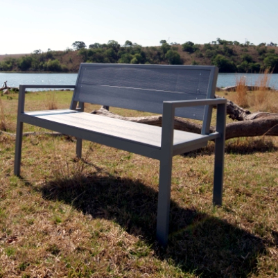 Modern clean lines, powder-coated aluminium frame with several colour choices, finished off with composite wood slats also with several colour choices. Manufactured with or without a backrest and with different end profiles. The composite wood is made from recycled plastic and sawdust, more frequently used for decking. Totally weather resistant, attractive and minimal maintenance. Custom-made to order in South Africa with a 4–6-week lead time. Delivered with a 5-Year Warranty (T&C’s apply)